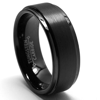 8MM Black High Polish / Matte Finish Men's Tungsten Ring Wedding Band Size 9.5Women's 10k White Gold 4mm Traditional Wedding Band Ring, Size 7.5