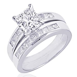 Princess Cut Diamond Engagement Wedding Rings Set In Channel Setting 14 karat White Gold