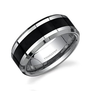 Style: Beveled Edge Gun Metal Finish with Black Carbon Fiber inlay, Width: 8 mm. The ring is stamped TUNGSTEN. Imagine wearing a ring that never needs polishing, a ring that is virtually scratch proof. Tungsten carbide rings are the future. With rugged looks and a modern design our Tungsten carbide rings are prefect as a wedding band or as a fashion accessory. Tungsten carbide is 4 times harder than titanium. Rated between 8 and 9 on the Mohs scale the hardest of which is diamond being rated a 10. Tungsten Carbide is so hard it can''t be engraved on, Our diamond tipped engraving machine barely makes a scratch. Completely hypoallergenic our tungsten carbide rings will never turn your finger green or cause irritation to your skin. If you need a durable yet elegant ring this is for you.