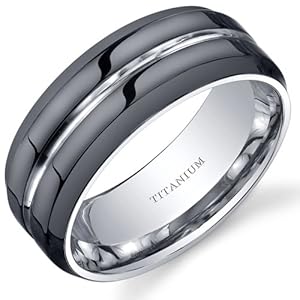 Modern Black tone grooved design, Matte Finish, Comfort fit, 8mm width, Size 8 to 13, made out of Titanium. Titanium is a tough, light weight hypoallergenic and durable metal. The light weight property makes Titanium a perfect alternative to Tungsten, Gold or Platinum bands which are comparatively more heavier. Includes Designer Gift Box. Style SR10664