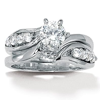 Its the most important day of your life. Make sure you choose a wedding ring thats just perfect. This beautiful two-piece DiamonUltra™ Cubic Zirconia wedding band, .74 carat T.W., set with DiamonUltra™ Cubic Zirconia accents was created with you in mind. Sterling silver. Sizes 5-10. Palm Beach Jewelry Item : 8083