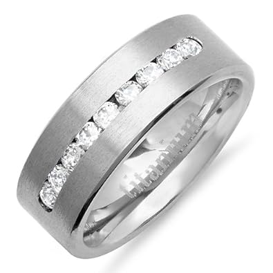 Round Cut Center Stone CZ Wedding Ring Set- 14KT White Gold Filled CZ Wedding Rings set by gemgem Jewelry (8)Tungsten Carbide Men's Ladies Unisex Ring Wedding Band 8MM (5/16 inch) Flat Step Carbon Fiber Band Comfort Fit (Available in Sizes 8 to 12) size 8