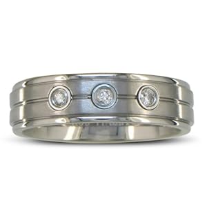 You will not find this diamond wedding band anywhere else. SuperJeweler.com brings you a classic 3 diamond burnished set titanium mens diamond wedding band. And we have it in all ring sizes from 7 to 13, in half sizes. This can be the matching wedding band you have both wanted, at a price you can definitely afford! 5 diamonds of H/I color and I1 clarity, SuperJeweler's 3 star quality. Space age titanium will never scratch!